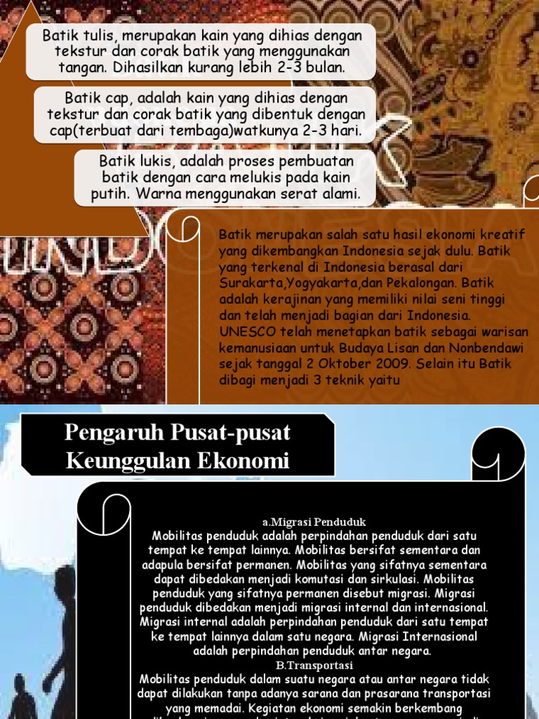 Penyebab batik menjadi pusat keunggulan ekonomi indonesia. Check spelling or type a new query. We did not find results for: Maybe you would like to learn more about one of these?