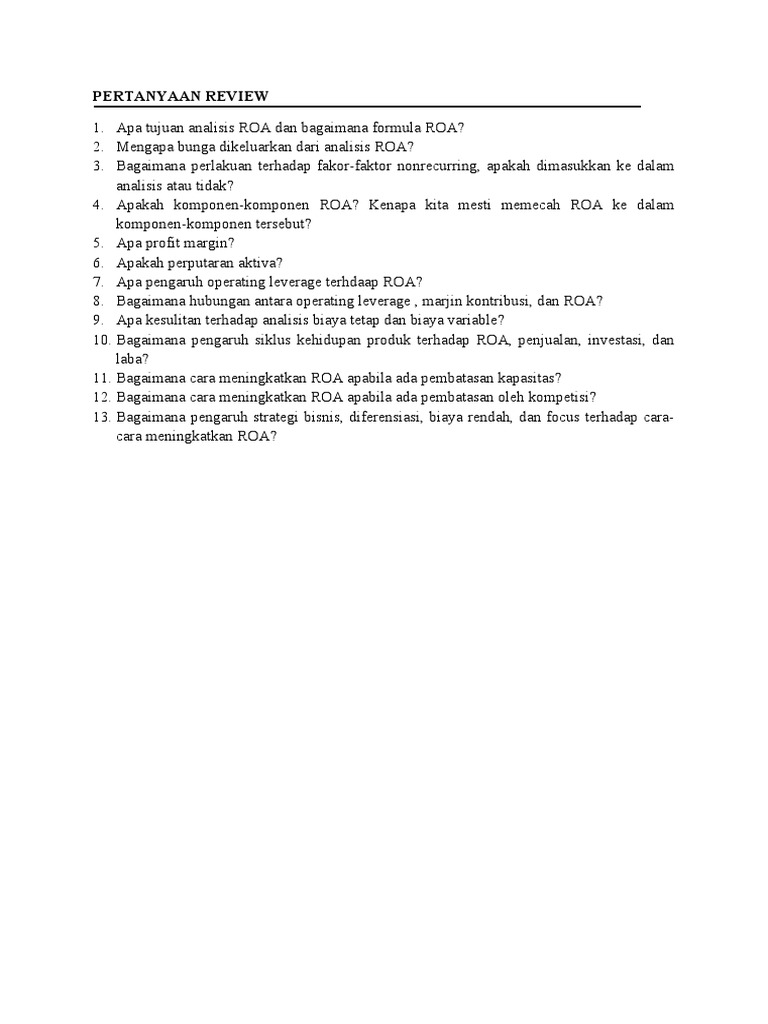 Pertanyaan Tentang Roa - Contoh Soal Dan Jawaban Return On Asset Ilmu Soal - We did not find results for:. Maybe you would like to learn more about one of these? We did not find results for: Check spelling or type a new query.